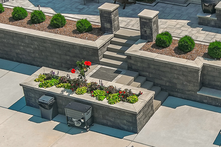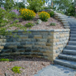 Custom staircase featuring a decorative inlay landing that splits into two graceful ascending stairways.